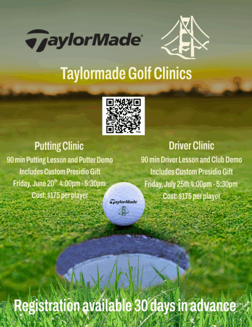 Unlock more distance and accuracy off the tee at our Driver Clinic at Presidio Golf Course, featuring the latest TaylorMade demo drivers and expert instruction from PGA professionals Deven DeLuca and Nick Zatopa. This 90-minute clinic is tailored to help golfers maximize power, improve launch conditions, and gain confidence with the big stick. Each participant […] |