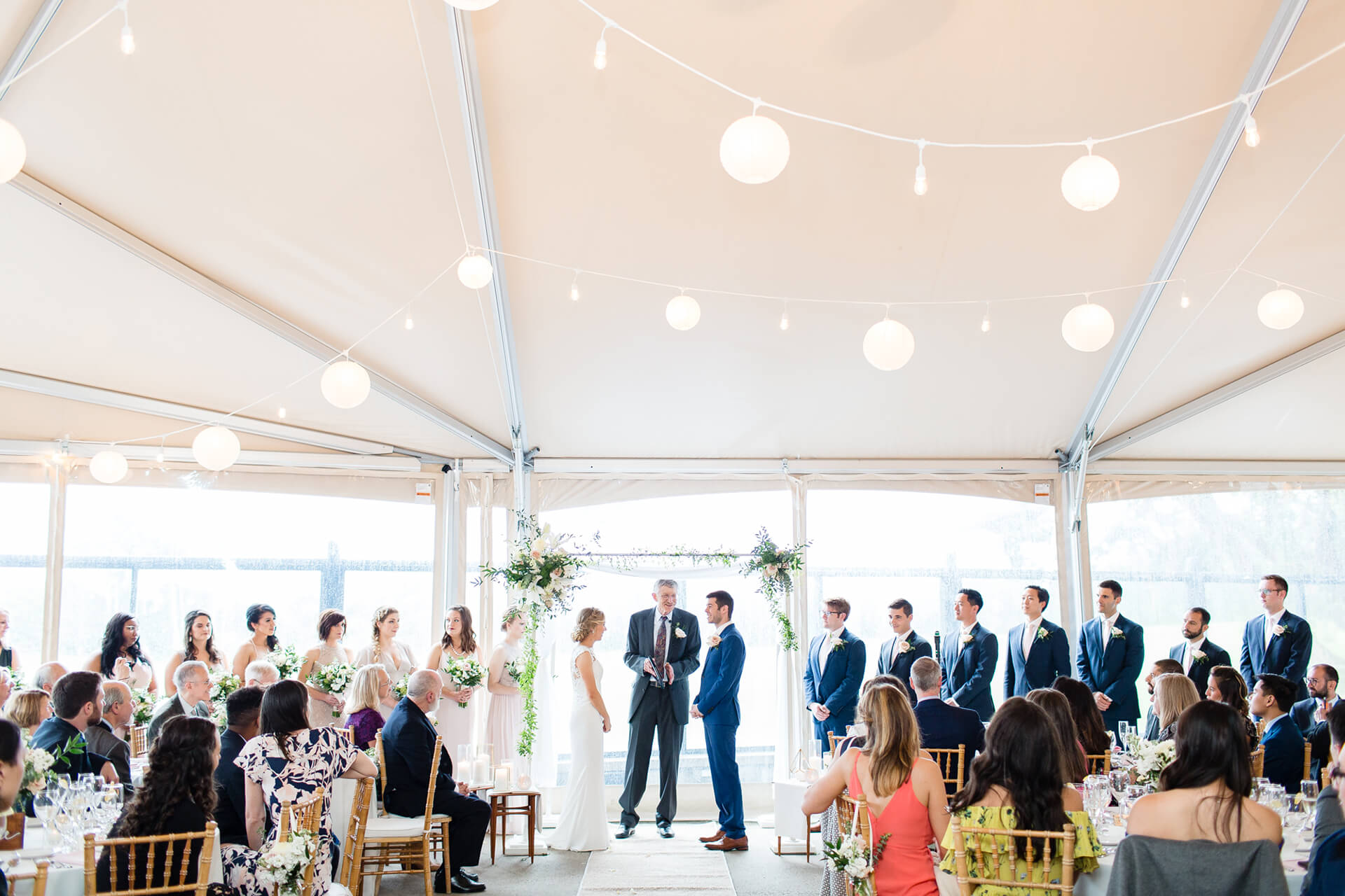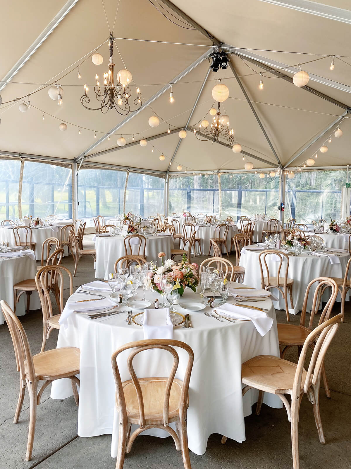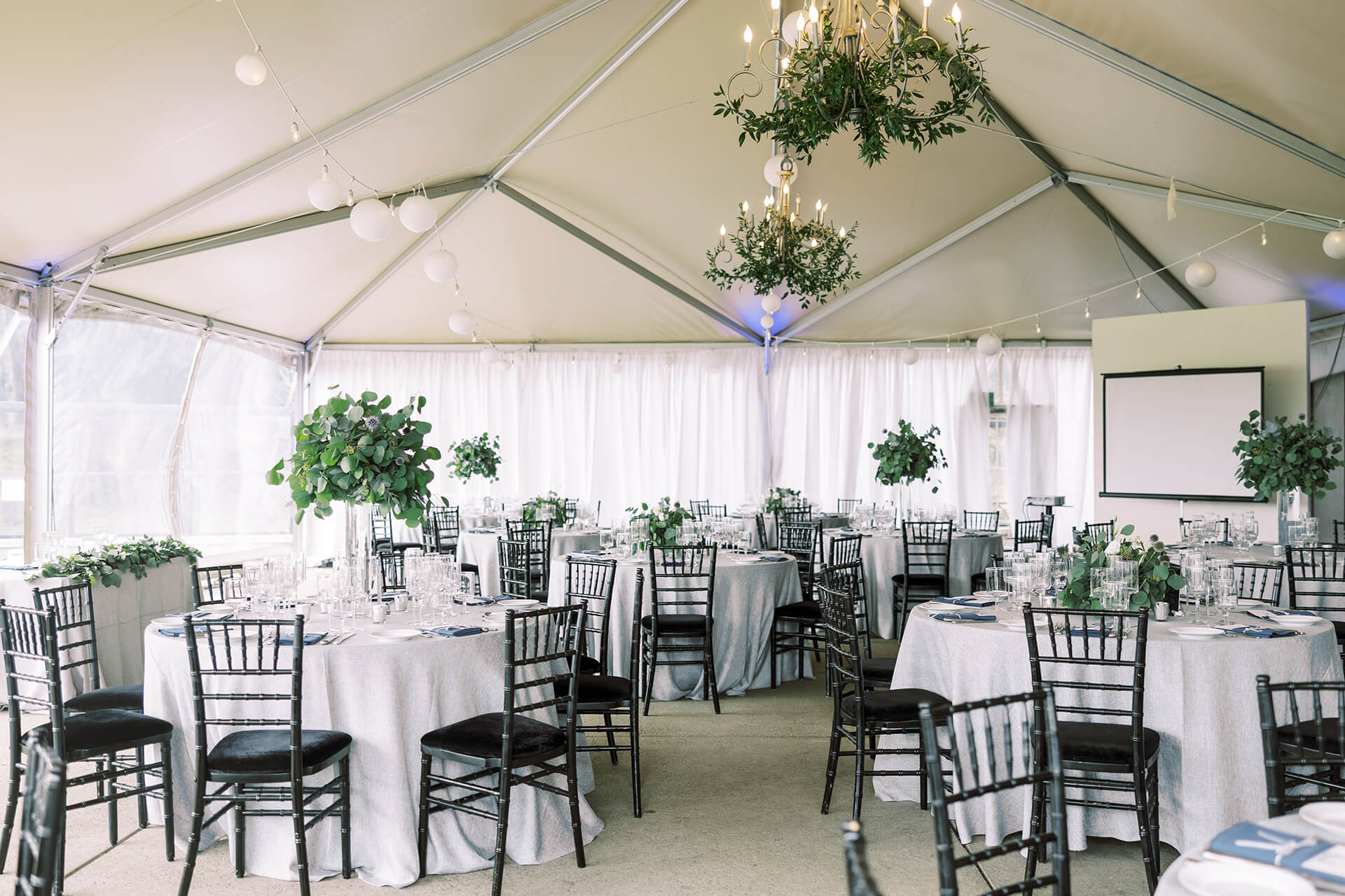 Our newly renovated Clubhouse provides indoor and outdoor event spaces to accommodate up to 300 guests. The Palmer Room within the on-site Ironwood Bar & Grill features cherry wood paneled pocket doors and a dramatic ceiling. Combined with the Grill, it can accommodate up to 130 guests. The Tented Outdoor Terrace with a white canopy tent and skylight allows for dinner and a festive dancing area for up to 200 guests.